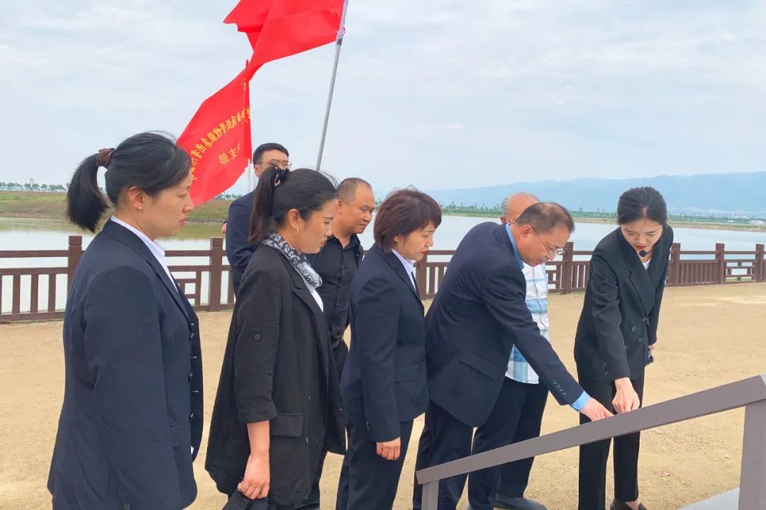 ▲公司黨員志愿者在鹽湖22號堤埝接待調(diào)研學(xué)習(xí)團(tuán)隊