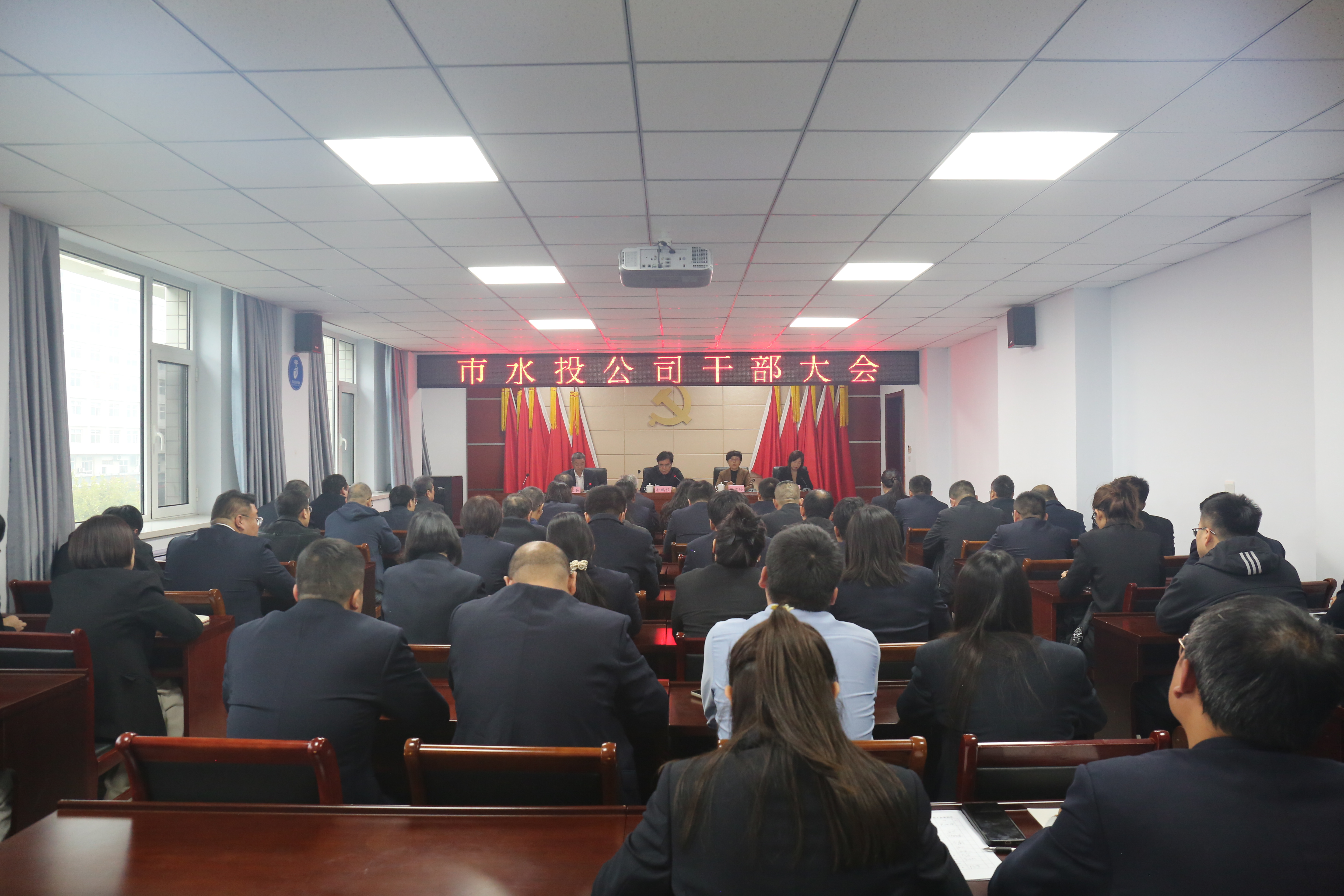 10月21日下午,市水投公司召開干部大會。市政府副市長孫鵬程,市委組織部副部長、市委老干部局局長丁文玲出席會議并講話。公司黨委書記、董事長薛文兵主持會議。公司及子公司班子成員、公司全體干部職工參加會議。