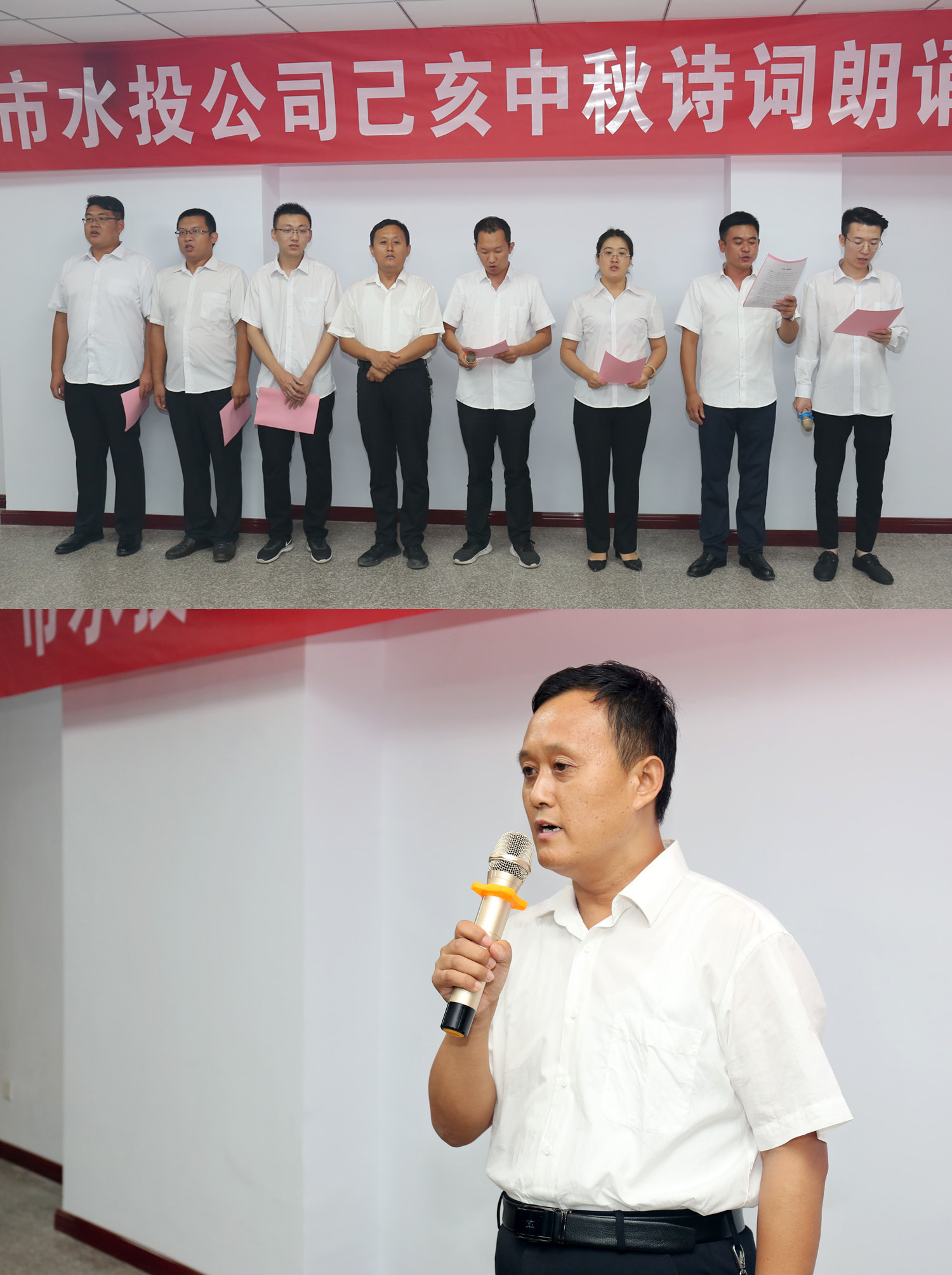 朗誦會開始前,公司黨委書記、董事長兼總經理崔作銘致辭,向為水投建設發(fā)展辛勤耕耘默默奉獻的全體員工致以誠摯的問候和衷心的感謝,同時預祝各位員工中秋佳節(jié)快樂家庭幸福、身體健康。他希望全體員工“守初心、擔使命,找差距、抓落實”,以“長風破浪會有時,直掛云帆濟滄海”的豪情,以“千淘萬漉雖辛苦,吹盡狂沙始到金”的毅力,以抓鐵留痕,踏石留印的執(zhí)行精神,再寫傳奇,再譜新篇!