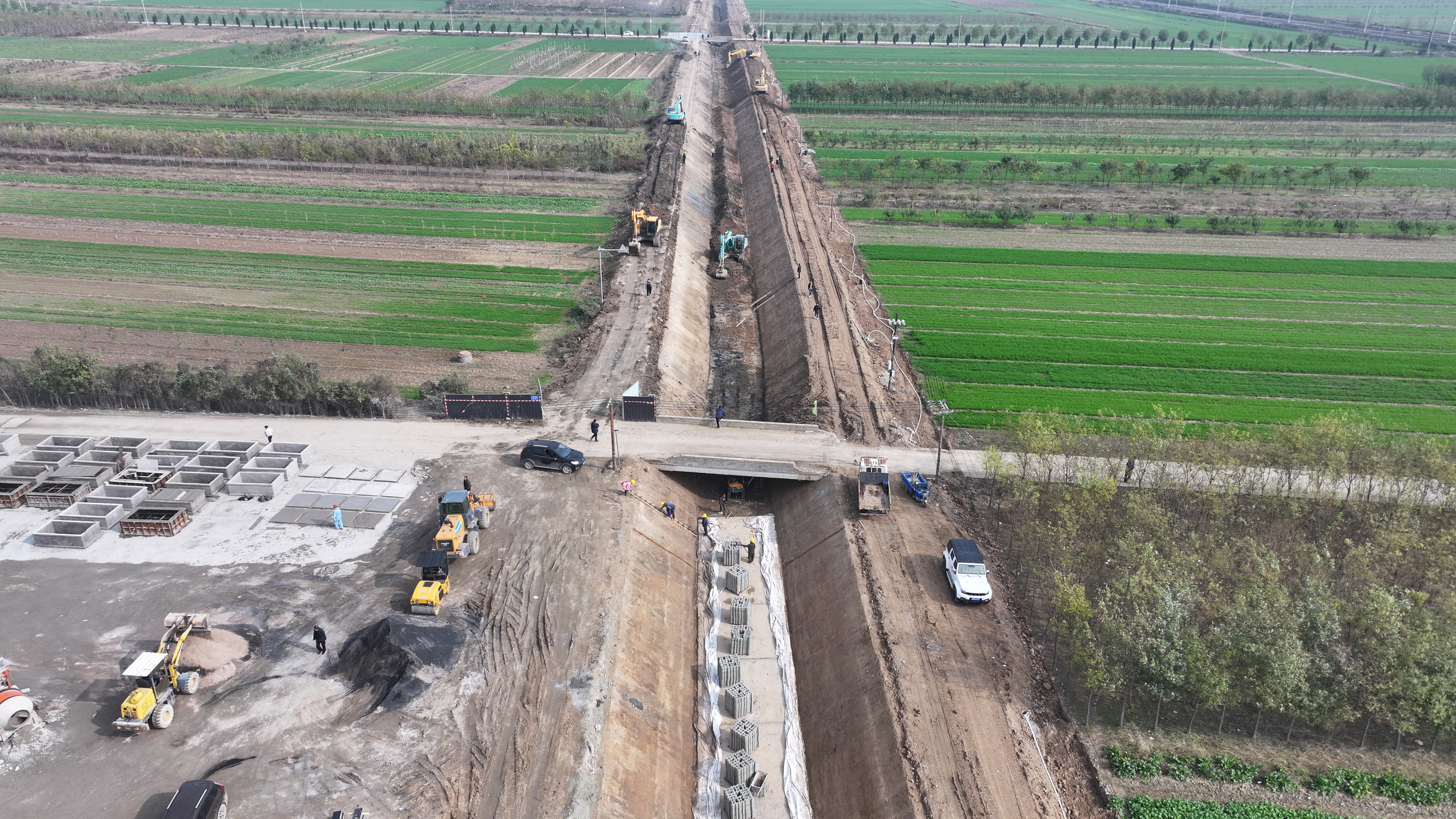在項目施工現(xiàn)場,挖掘機、裝載機、振動碾、壓路機等多臺大型機械設(shè)備正全力運轉(zhuǎn),二十四小時作業(yè)不停工;十余名管理人員吃住在工地,隨叫隨到,發(fā)現(xiàn)問題及時解決問題,二十余名施工人員一身土一身泥,不叫苦不叫累,連續(xù)戰(zhàn)斗在工地;多個工作面同時展開施工,專人專崗,落實主體責任,各項工作井然有序,工程進度按照既定的工作目標穩(wěn)步進展。截止目前,已完成井點降水打井133眼,降水臺班2300個;清基28519m³、土方開挖9000m³、土方回填約6000m³、砂礫石墊層200m;渠道底板混凝土澆筑200m。